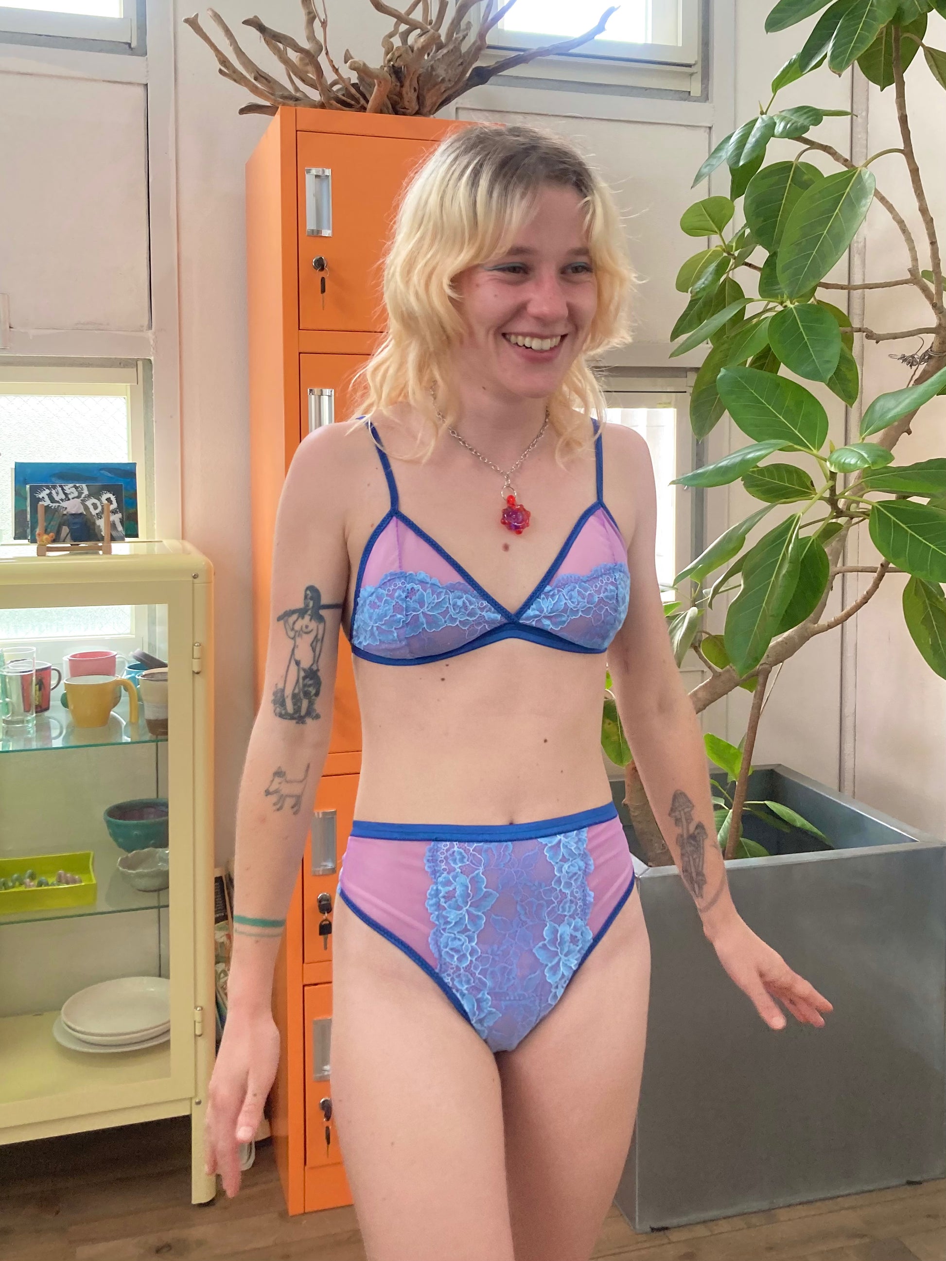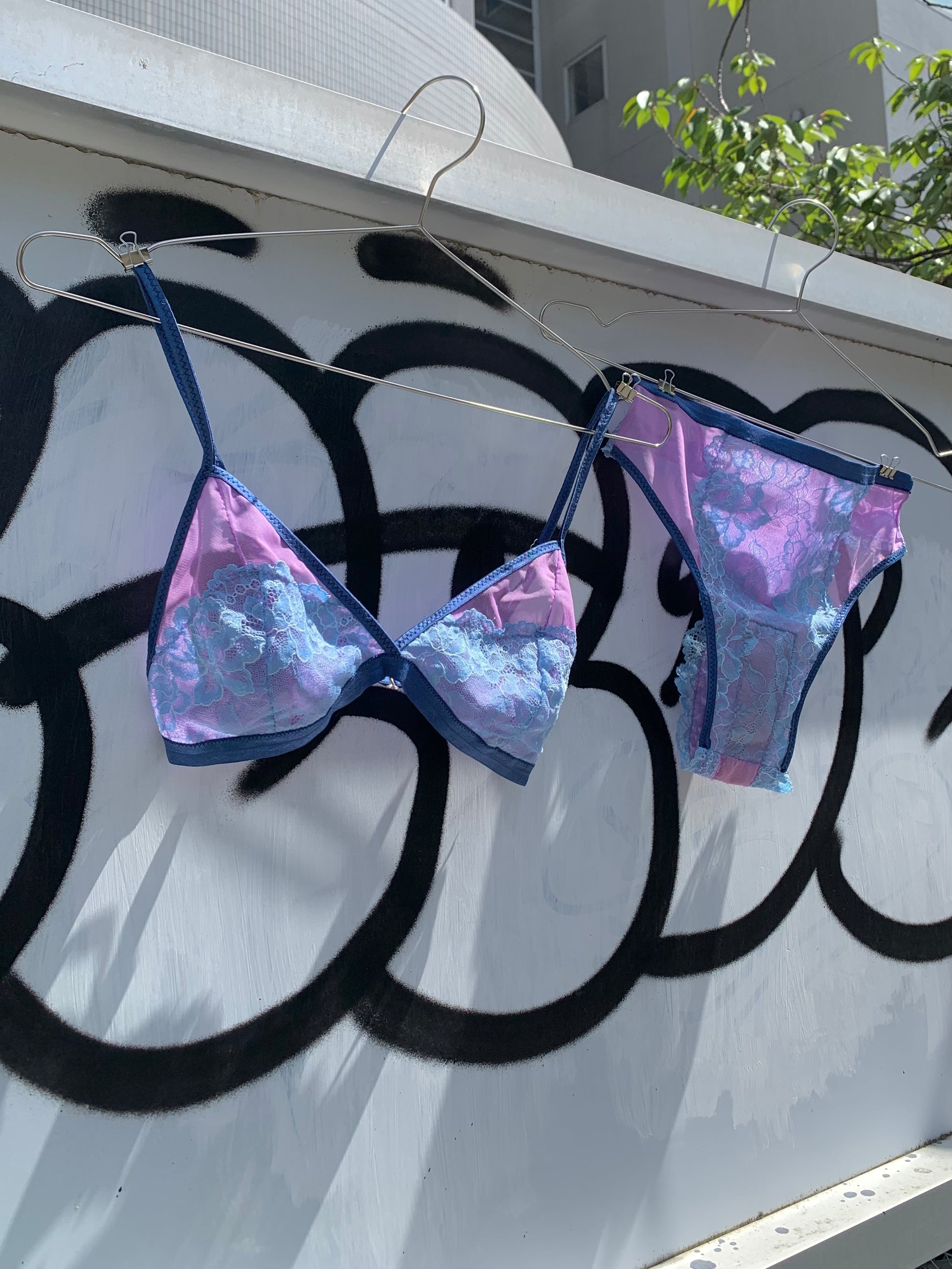 紫陽花をテーマにしたピンクとブルーのランジェリーを纏って、雨と仲良く幸福に過ごせますように🫧
